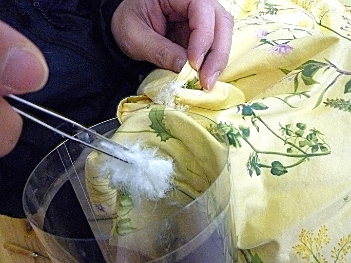 ご予算が合わない場合、持ち帰って検討される場合には、羽根の取り出し口をその場で縫製してお返ししますので、遠慮なくその旨をお伝え下さい。