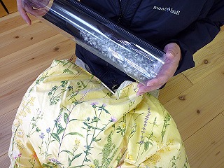 ●お預かりした羽毛布団から取りだした羽根を別の袋に詰め替え、袋ごと洗浄する方法